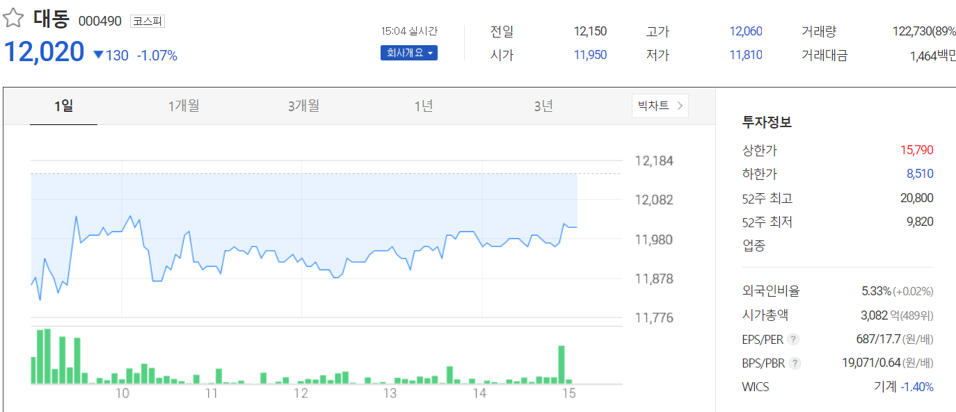 이 글에서는 대동 주가 전망과 목표 주가, 기업 정보에 대해서 설명합니다. 주식 시장에서 중요한 것은 미래의 기업 가치를 예측하고 선제적으로 움직이는 것입니다. 투자 대상을 선택하기 전에 현재 기업의 현황과 데이터를 확인하는 것이 필요합니다. 대동 주식의 주요 현황과 투자 정보를 확인하시고 주식 투자에 도움이 될 만한 정보들을 모아 놓았으니 투자를 고려하실 때 참고하세요..