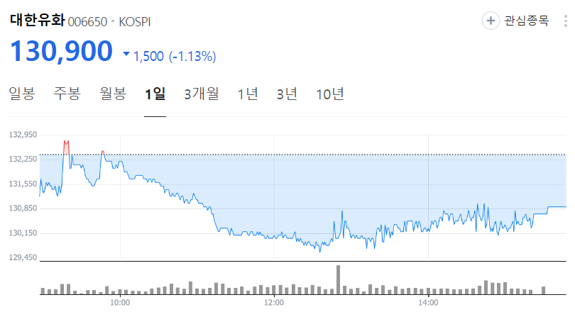 대한유화 현재 주가는 132,400원이며 전일 대비 -1,400원의 모습을 보이고 있습니다. 대한유화의 주주현황을 살펴보면 이순규 주주가 전체 지분 39.20%를 소유하고 있습니다. 대한유화는 화학 기업으로 장중 기준으로 주가는 132,400원 입니다. 대한유화의 시가 총액은 8508억 원이며 발행 주식수는 6,500,000주 입니다. 외국인 보유 비중은 7.59% 이며 장중 거래량은 30,504원 을 기록했습니다. 매출액은 25,000억 원을 달성했습니다. EPS는 8,403원이며 대한유화 주식 배당수익률은 0.65% 입니다.