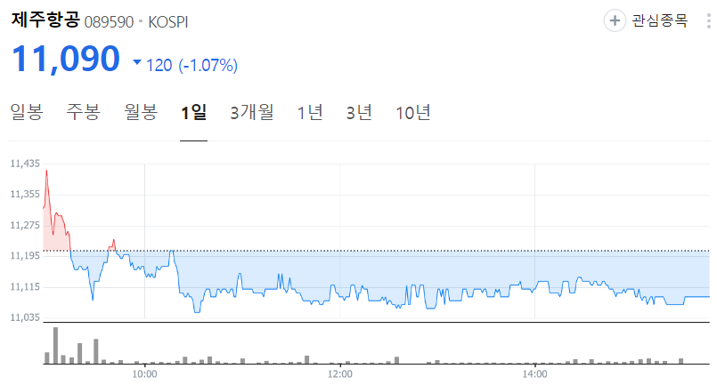 제주항공 현재 주가는 10,990원이며 전일 대비 -15.91원의 모습을 보이고 있습니다. 제주항공의 주주현황을 살펴보면 AK홀딩스 주주가 전체 지분 53.61%를 소유하고 있습니다. 제주항공는 항공운수 기업으로 장중 기준으로 주가는 10,990원 입니다. 제주항공의 시가 총액은 9040억 원이며 발행 주식수는 80,640,985주 입니다. 외국인 보유 비중은 3.81% 이며 장중 거래량은 96,594원 을 기록했습니다. 매출액은 17,240억 원을 달성했습니다. EPS는 1,382원이며 제주항공 주식 배당수익률은 % 입니다.