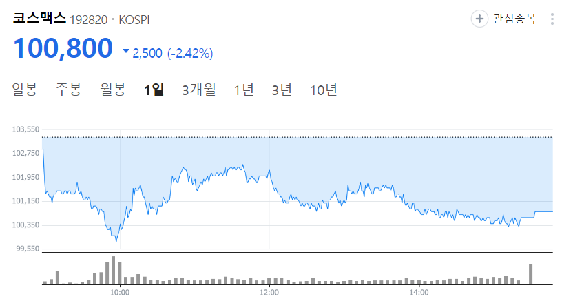 코스맥스 현재 주가는 103,300원이며 전일 대비 -10.87원의 모습을 보이고 있습니다. 코스맥스의 주주현황을 살펴보면 코스맥스비티아이 주주가 전체 지분 26.26%를 소유하고 있습니다. 코스맥스는 개인생활용품 기업으로 장중 기준으로 주가는 103,300원 입니다. 코스맥스의 시가 총액은 1조1440억 원이며 발행 주식수는 11,349,509주 입니다. 외국인 보유 비중은 27.67% 이며 장중 거래량은 70,074원 을 기록했습니다. 매출액은 13,408억 원을 달성했습니다. EPS는 9,401원이며 코스맥스 주식 배당수익률은 % 입니다.