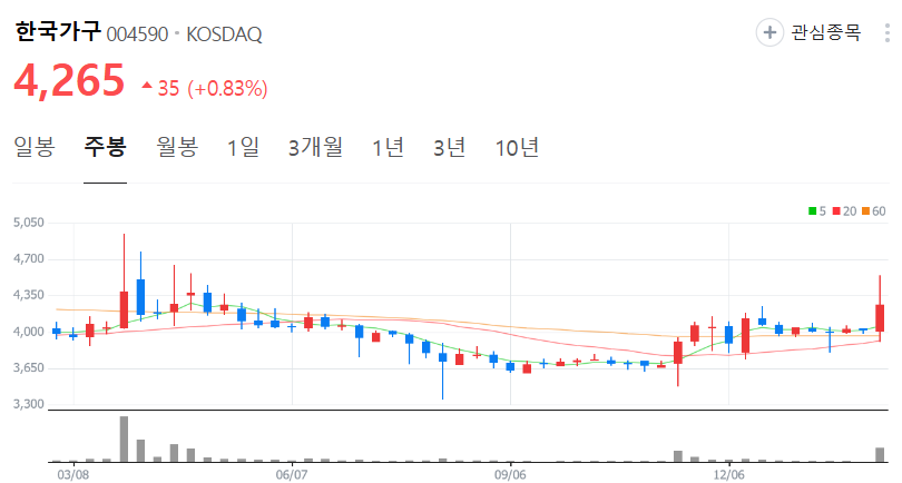 한국가구 주가 정보